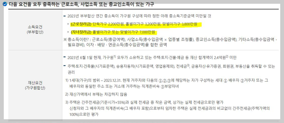 소득 요건과 재산 요건이 충족이 되어야합니다.